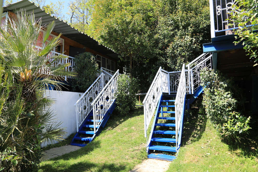 В домике все работало, у каждого по 2 полотенца, если надо поменяют хоть каждый день. Просто надо попросить. Даже мыльные принадлежности есть. Кондей советский, но дул прекрасно. Еда по меню, которое вывешено в столовой. Все сьедобно.сотрудники очень вежливые и всегда готовы помочь. На территории есть разные качели, настольный теннис и настольный футбол. В аренду есть 2 сапа. 300 рублей час. Море через дорогу и жд пути. На пляже крупная галька, море чистое. Возле Мим останавливается маршрутка- можно доехать как до Афона, так и до Сухума. В 5 мин ходьбы- магазин. До центра минут 15. В целом все понравилось.